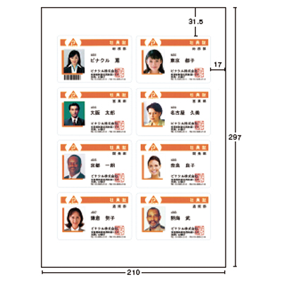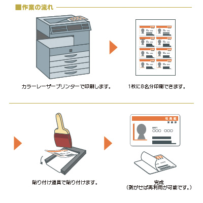 カラーページプリンタで印刷ができ、ICカード等に貼り付けが可能です。