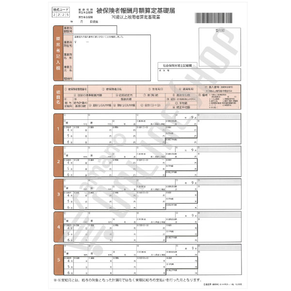 ●算定基礎届、月額変更届については季節商品のため在庫終了次第販売を終了させていただく場合がありますのでご了承ください。