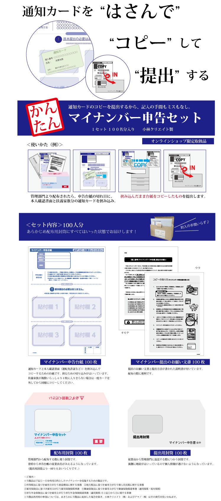| 商品名 | マイナンバー申告セット(100人分入り) |