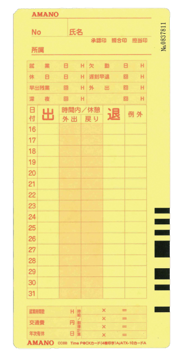 統合にあたりカード箱およびタイムカード紙面のデザインを一部変更しました。