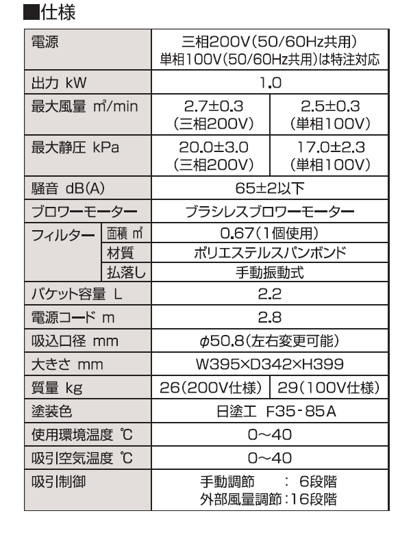 コンパクトなボディーで掃除機の様な高い吸引力を誇る小型高圧集塵機です。