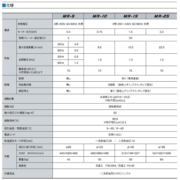ミストコレクターMRシリーズ。