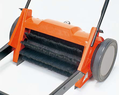 手で押して歩くだけでブラシが回転し、ゴミを回収できる電源不要でエコな路面清掃機