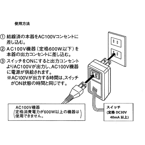 ●定格消費電力AC100V、600Wまでの機器にお使いいただけます。