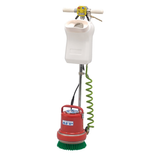 8インチの小型階段用フロアポリッシャー。誤作動を防ぐ安全スイッチ採用。防水型専用ブラシ付属。