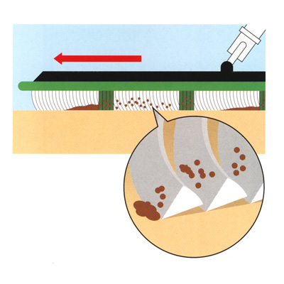 ■太いファイバーとマイクロファイバー素材が汚れをこすってかき取ります。