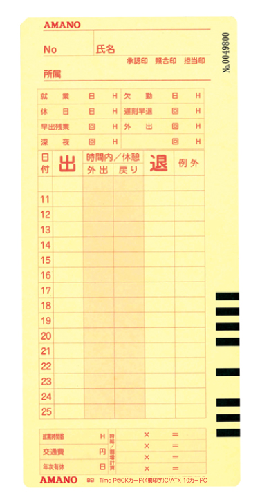 | 5個 | TimeP@CKシリーズ および ATX-10用タイムカード 25日/10日締め用 |