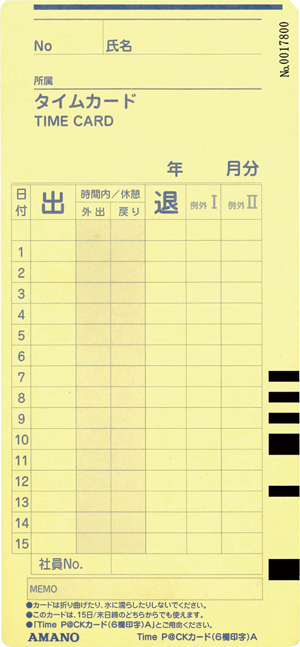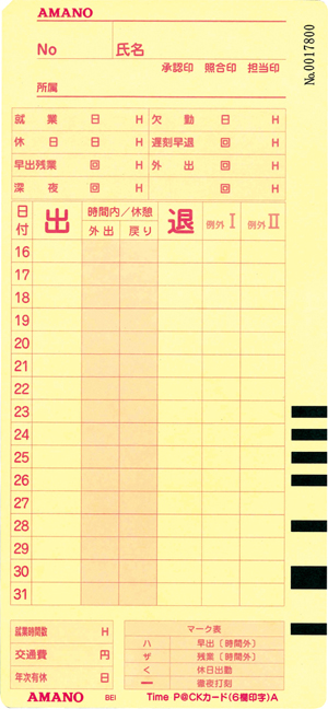 | 5個 | 【※旧品名:ProP@CKカードA】ProP@CKシリーズ、TimeP@CKV用タイムカード 月末(31日)/15日締め用 |