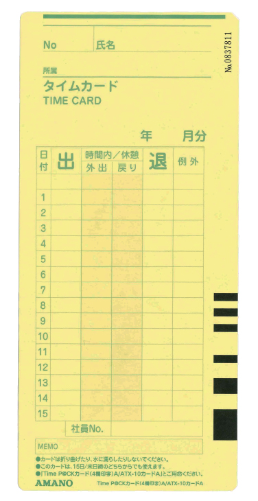 ・タイムカード下部に記載のタイムカードの名称