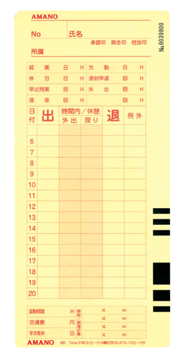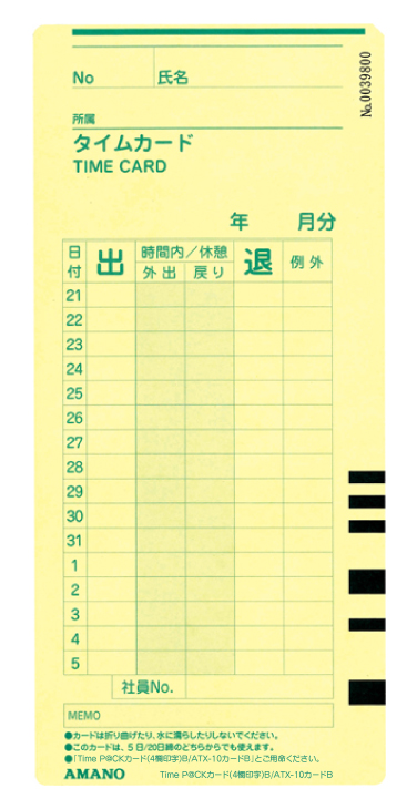 統合にあたりカード箱およびタイムカード紙面のデザインを一部変更しました。
