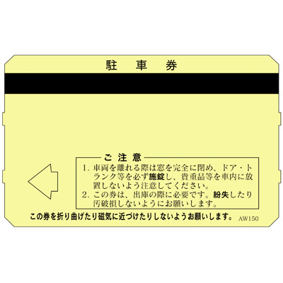 この駐車券は、低抗磁気仕様の駐車券ですので高抗磁気仕様の