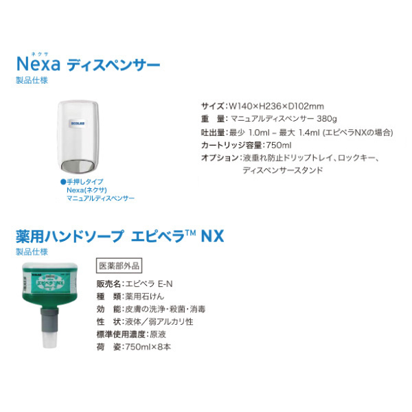 ■内容:Nexaマニュアルディスペンサー1個、洗剤ボトル(750ml×8個)