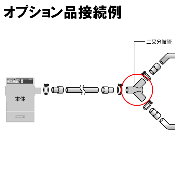 小型集塵機VF−5N・5NA用 オプション品です。配管の途中で分岐し、吸込み場所を切り替えたいときに。二又側の口径がφ50.8mmです。