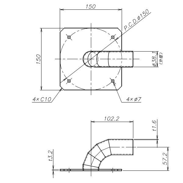 ●φ38mm(外径φ38.1、内径φ34.9)曲管付