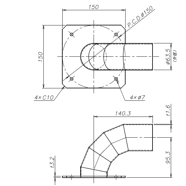 ●φ65mm(外径φ63.5、内径φ60.3)曲管付