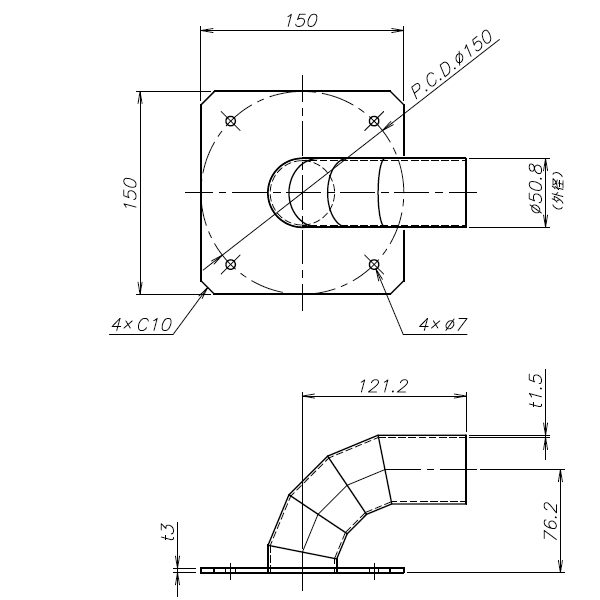 ●φ50mm(外径φ50.8、内径φ47.8)曲管付